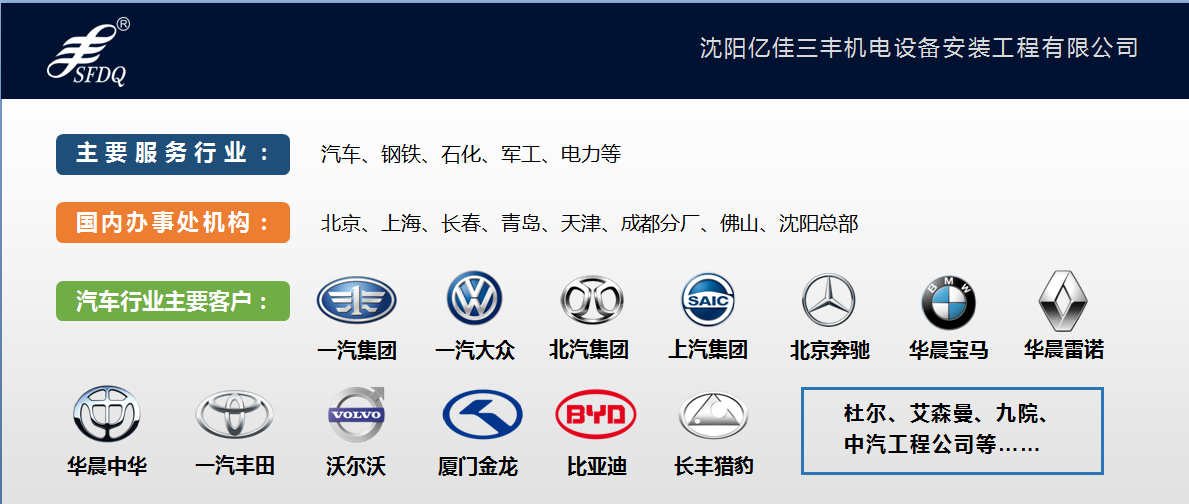 ? ? ? ? ?沈陽億佳三豐機(jī)電設(shè)備安裝工程有限公司,是主要從事機(jī)械化輸送、非標(biāo)專機(jī)設(shè)備、機(jī)電一體化、工業(yè)自動化等產(chǎn)品的研發(fā)、制造、銷售的專業(yè)技術(shù)企業(yè)。旗下?lián)碛休斔驮O(shè)備事業(yè)部、非標(biāo)設(shè)備事業(yè)部、自動化設(shè)備事業(yè)部、機(jī)電設(shè)備事業(yè)部及生產(chǎn)中心五大核心體系。公司在管理上追求以人才為企業(yè)第一資本,以高新技術(shù)開發(fā)為先導(dǎo),以質(zhì)量生存為保證,以服務(wù)為宗旨,不斷向社會推出高、新、優(yōu)與國際接軌的具有國內(nèi)先進(jìn)水平的科技產(chǎn)品。
